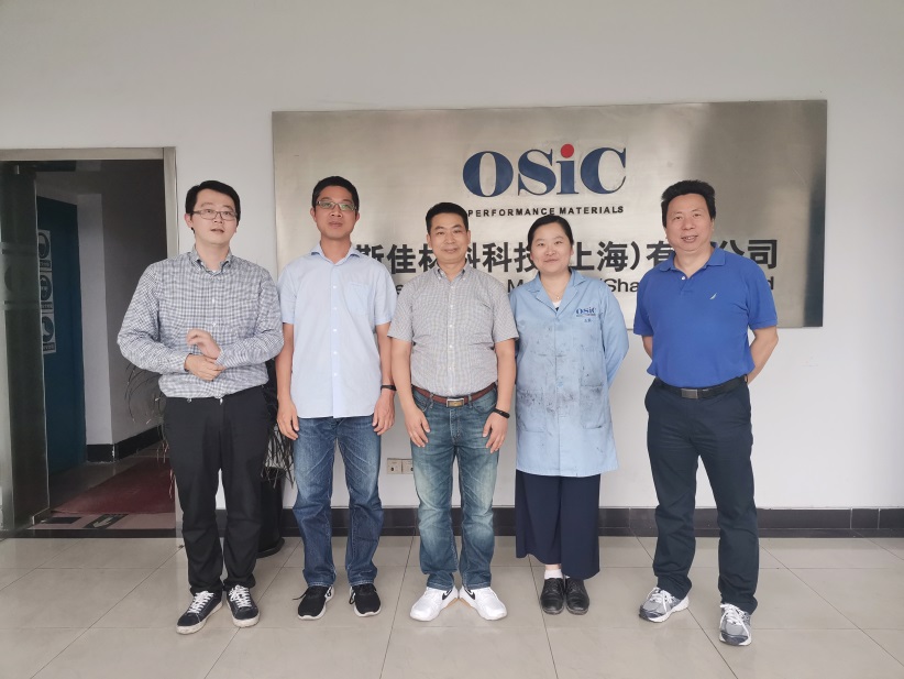为了做好涂料工程人才培养,拓展实习和就业基地,加强校企合作力度,2020年9月28日,yl23455永利高分子材料与工程专业系主任王继虎,副系主任陈凯敏实地走访了奥斯佳材料科技(上海)有限公司,洽谈员工培养、校企合作等事宜。受到了企业厂长郭毅,研发部经理王茜,工程师马蔚的热情接待。