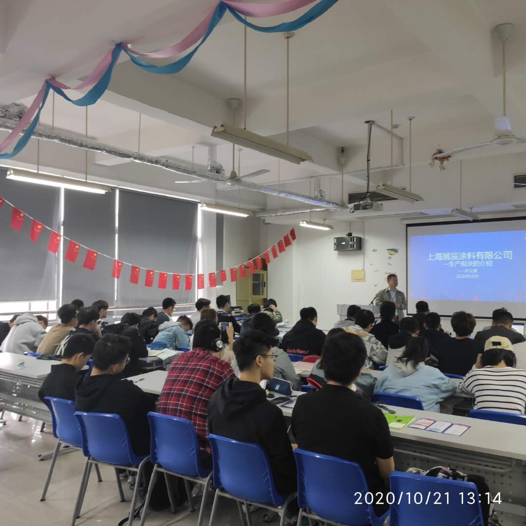 宣讲会中,主讲人从关于我们、企业文化、招聘岗位等方面进行了一个全面的介绍。展辰新材旗下产品涵盖家具涂料、装修涂料、建筑涂料、工业涂料等领域。公司以“创新,和谐,共同成长”为核心价值观,以“客户导向、成果导向、奋斗者为本”为经营方针,以开明、开放的姿态,正肩负时代赋予的历史使命,努力为世界涂料的发展作出卓越贡献。