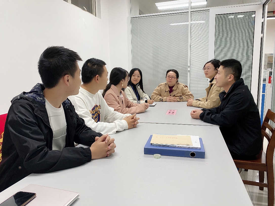 11月5日下午,在yl23455永利员工工作办公室C103会议室,公司党委副书记秦颖、办公室主任殷浩、团委书记郑文静、负责易班工作的辅导员邓月与三名参加校内“网上重走长征路”暨推动“四史”学习竞答活动并获奖的员工召开了“四史”学习教育专题座谈会,本次座谈会的目的是深入贯彻落实习近平总书记关于学习党史、新中国史、改革开放史、社会主义发展史的重要讲话和指示精神,引导老员工在学思践悟中坚定理想信念,在奋发有为中践行初心使命,继续推动化院员工“四史”学习的深入。