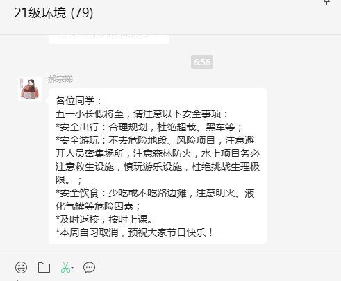 环境工程系开展五一假期安全教育