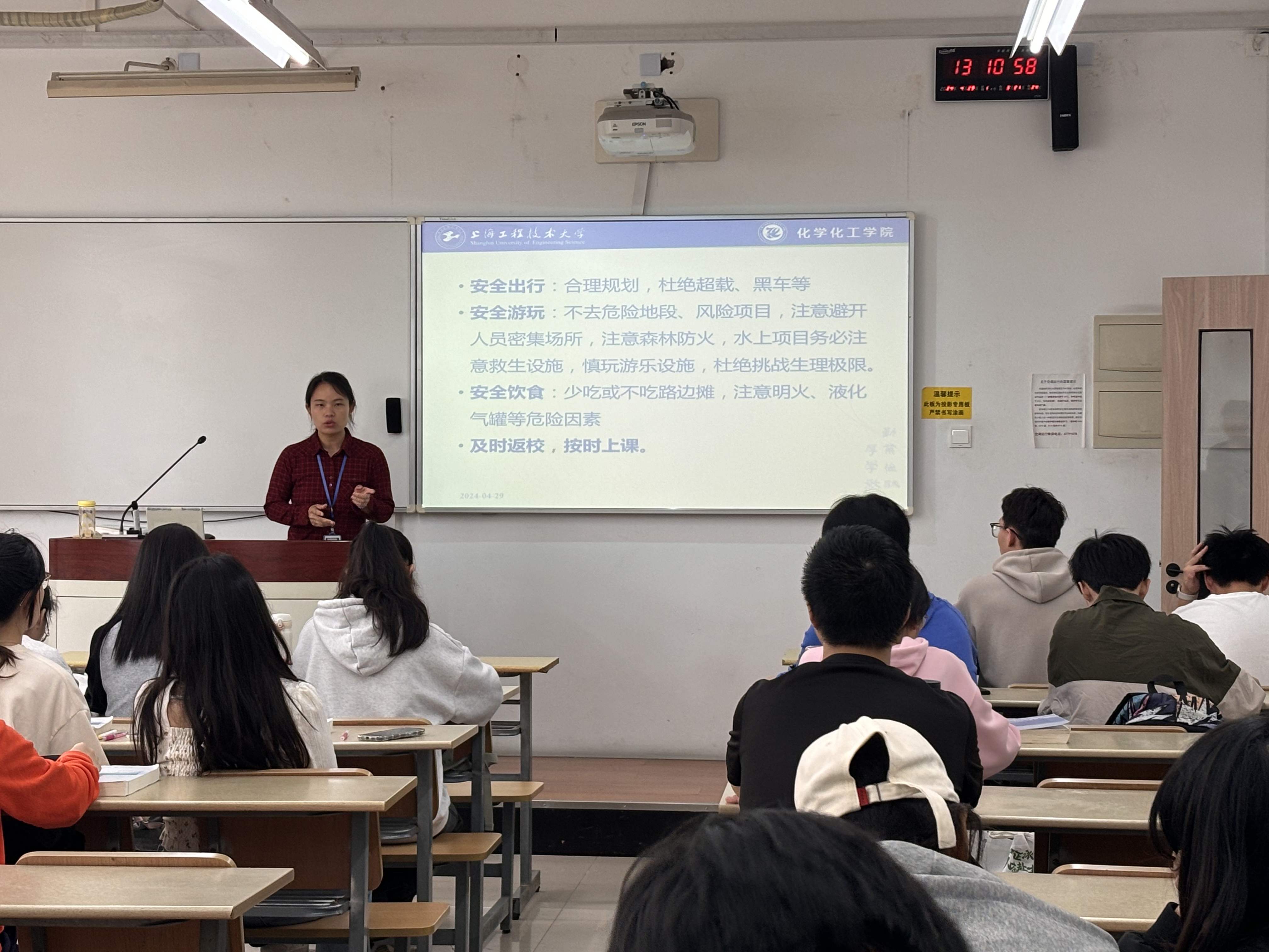班会上,郝宗娣老师向大家举例讲解了老员工假期外出途中需要注意的安全事项,叮嘱同学们务必要时刻注意自身安全,合理规划假期生活,外出遵守交通法规不乘黑车、不去危险地段、不参加高风险游玩项目;尽量避开人员密集拥挤场所,注意森林防火,参加水上项目要穿戴救生装备;饮食上不吃或少吃路边摊食物;留校同学要遵守校规校纪,安全用电、不私自留宿校外人员、注意防火防盗。她还强调,假期期间若有特殊情况务必第一时间与家长、老师联系,假期结束要及时返校、按时上课。