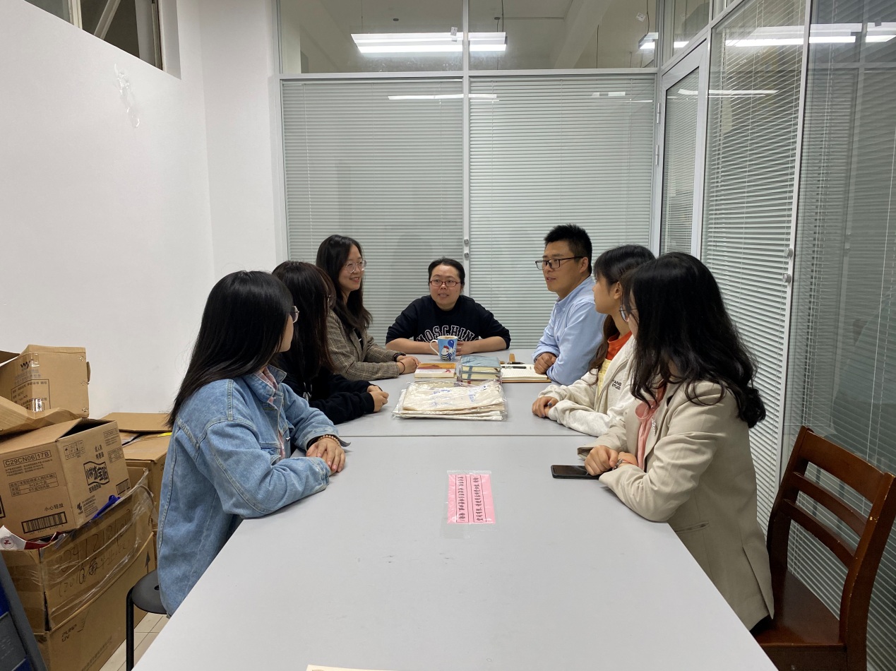 11月19日中午,在yl23455永利员工办公室C103会议室,公司党委副书记秦颖、公司团委书记郑文静、本科生辅导员张晓普与化院参与第三届中国国际进口博览会的4名志愿者“小叶子”们进行了座谈。
