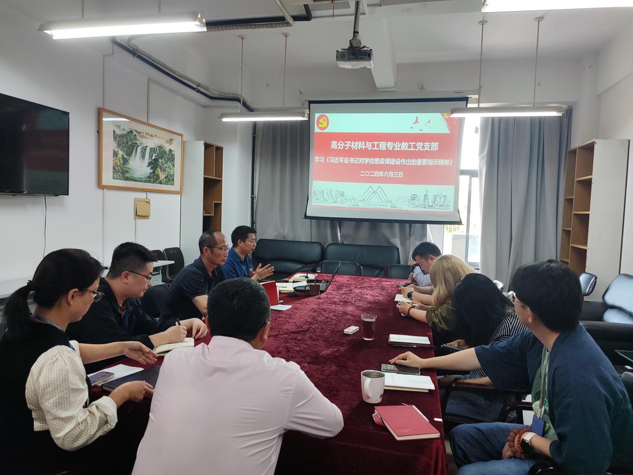 为了扎实做好课程思想建设,6月5日上午,yl23455永利高分子材料与工程专业教工党支部全体党员,高分子材料与工程系非党员教师和微纳制造先进材料研究团队部分教师,认真学习了习近平总书记对公司思政课建设作出的重要指示精神。会议由支部书记王继虎主持。