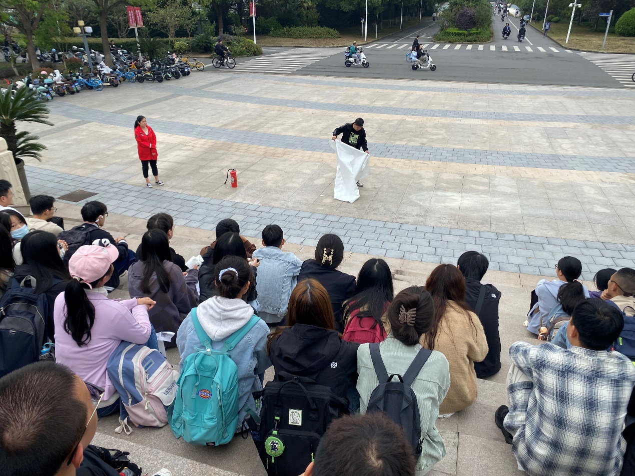 演练由保卫处消防科季程程老师主讲,演练首先由保卫处消防科对灭火器、灭火毯使用的基本知识、操作流程开展了培训。随后190多位研一同学人手一个灭火器,进行了提、拔、握压的使用练习。