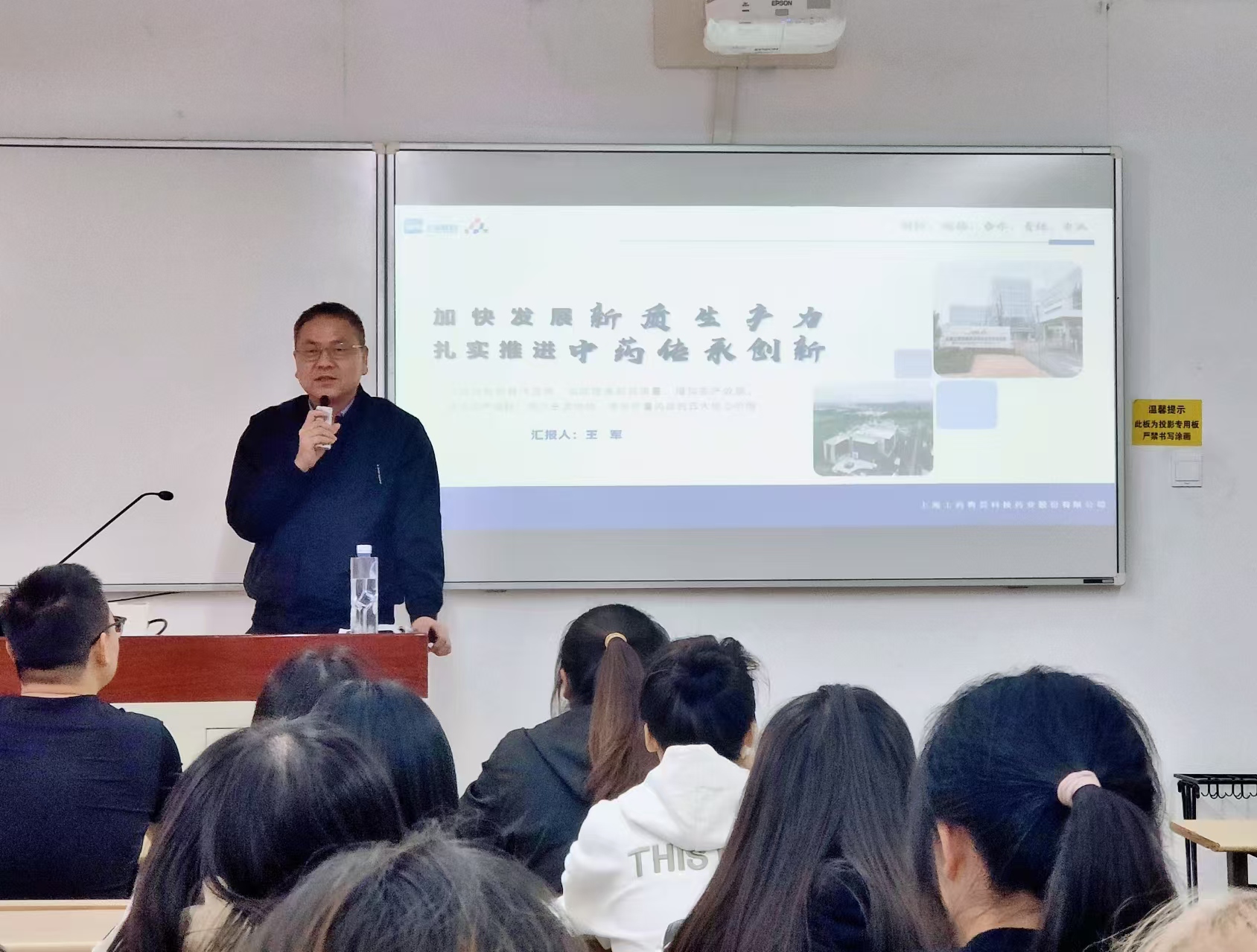 为加强公司制药工程专业产教融合建设,增强员工对中药数智化制造体系及中药产业新质生产力的认识,近日,制药工程系邀请了上海上药杏灵科技药业股份有限公司总经理、高级工程师王军走进公司“天然药物化学”课堂,为同学们带来了一场题为“加快发展新质生产力、扎实推进中药传承创新”的精彩报告。
