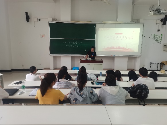 活动现场,首先由主持人殷昊老师简单介绍了本次活动的三项内容,并发起党史学习动员。活动第一项内容,由支部三位成员以党史发展脉络进行了微党课展示,首先由肖竹天同志对党史整体发展史进行了概括性的介绍,其中重点介绍了由蔡和森提出的中国共产党名称的由来,接下来由贾慧玲同志对建国前党的发展进行了学习汇报展示,她重点带领大家学习了遵义会议的起因、内容及其意义,最后由何元俊同志对建国后党的发展进行了讲解,他以改革开放后中国的变化为重点内容做了汇报。