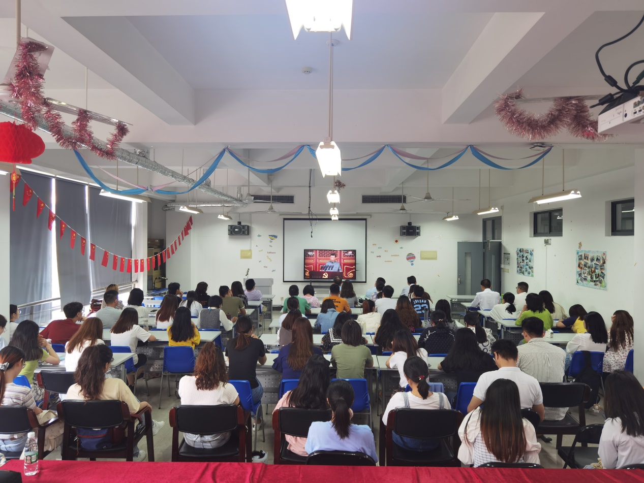师生们济济一堂,跟随习近平总书记的讲话一起回顾了中国共产党的百年奋斗历程,展望光辉未来。习近平总书记强调,过去100年,中国共产党向人民、向历史交出了一份优异的答卷。现在,中国共产党团结带领中国人民又踏上了实现第二个百年奋斗目标新的赶考之路。有中国共产党的坚强领导,有全国人民的紧密团结,全面建成社会主义现代化强国的目标一定能够实现,中华民族伟大复兴的中国梦一定能够实现。