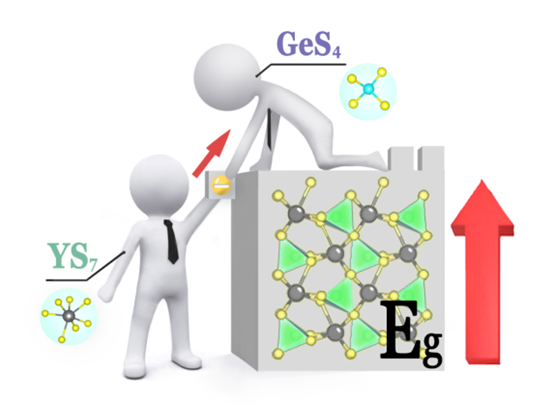 通过电荷转移工程,设计合成KYGeS4非线性光学晶体材料,突破了稀土硫族非线性光学材料带隙“3.0eV壁垒”的限制,表现出良好的非线性光学性能,这种方法不仅对非线性光学晶体材料的功能优化具有重要意义,而且对于其他宽带隙和强极化率功能材料的合理结构设计也有重要影响,此项研究成果发表于《Materials Horizons》,题为“Breaking through the ‘‘3.0 eV wall’’ of energy band gap in mid-infrared nonlinear optical rare earth chalcogenides by charge-transfer engineering” (DOI:10.1039/d1mh00562f,第一作者:梅大江,共同通讯作者:梅大江、姜兴兴、林哲帅)。