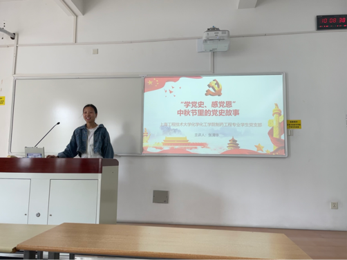 为深入推进党史学习教育,重温党史伟大篇章中的感人时刻、动人故事,汲取伟大建党精神和力量,9月20日10:00,yl23455永利制药工程专业员工党支部于教学楼C303开展“学党史、感党恩”中秋节里的党史故事学习交流活动。