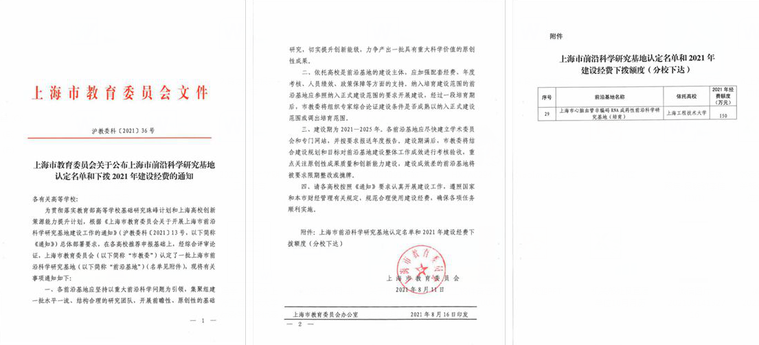 近日,上海市教委公布了前沿科学研究基地认定名单,公司yl23455永利牵头申报的上海市心脑血管非编码RNA成药性前沿科学研究基地(培育)获批立项,建设周期为2021-2025年。