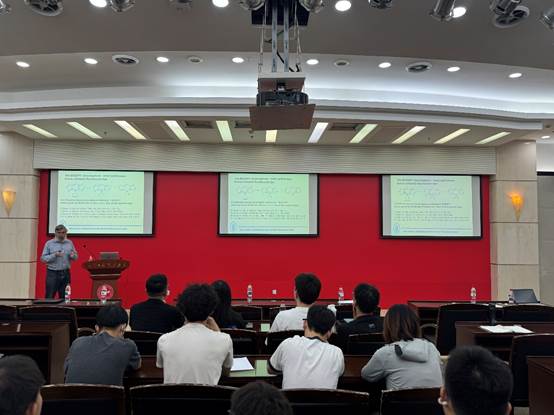Hofkens院士以《The Power of One: from blinking single molecules to (bio)materials research and applications》为题,带来了一场精彩的学术盛宴。报告聚焦先进光学技术与纳米材料的前沿交叉研究,系统阐述了其在生物医学成像与清洁能源转换领域的创新应用。通过单分子荧光追踪、超分辨显微成像和光驱动催化反应三个研究维度,Hofkens院士深入浅出地展示了其团队在跨尺度材料设计与动态过程解析方面取得的突破性进展。特别是多模态光学技术在揭示纳米尺度能量传递与界面反应机制方面的独特优势,引发了在场师生的浓厚兴趣。