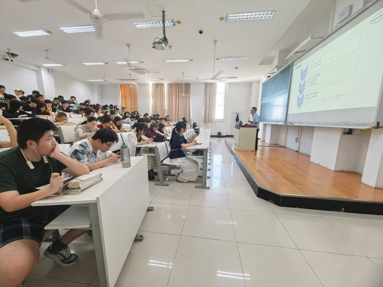 本次宣讲会特邀公司国际化学服务部徐主任结合自身丰富经验,深入剖析生物医药行业发展趋势及新药研发领域的前沿动态,为同学们描绘广阔的行业前景。