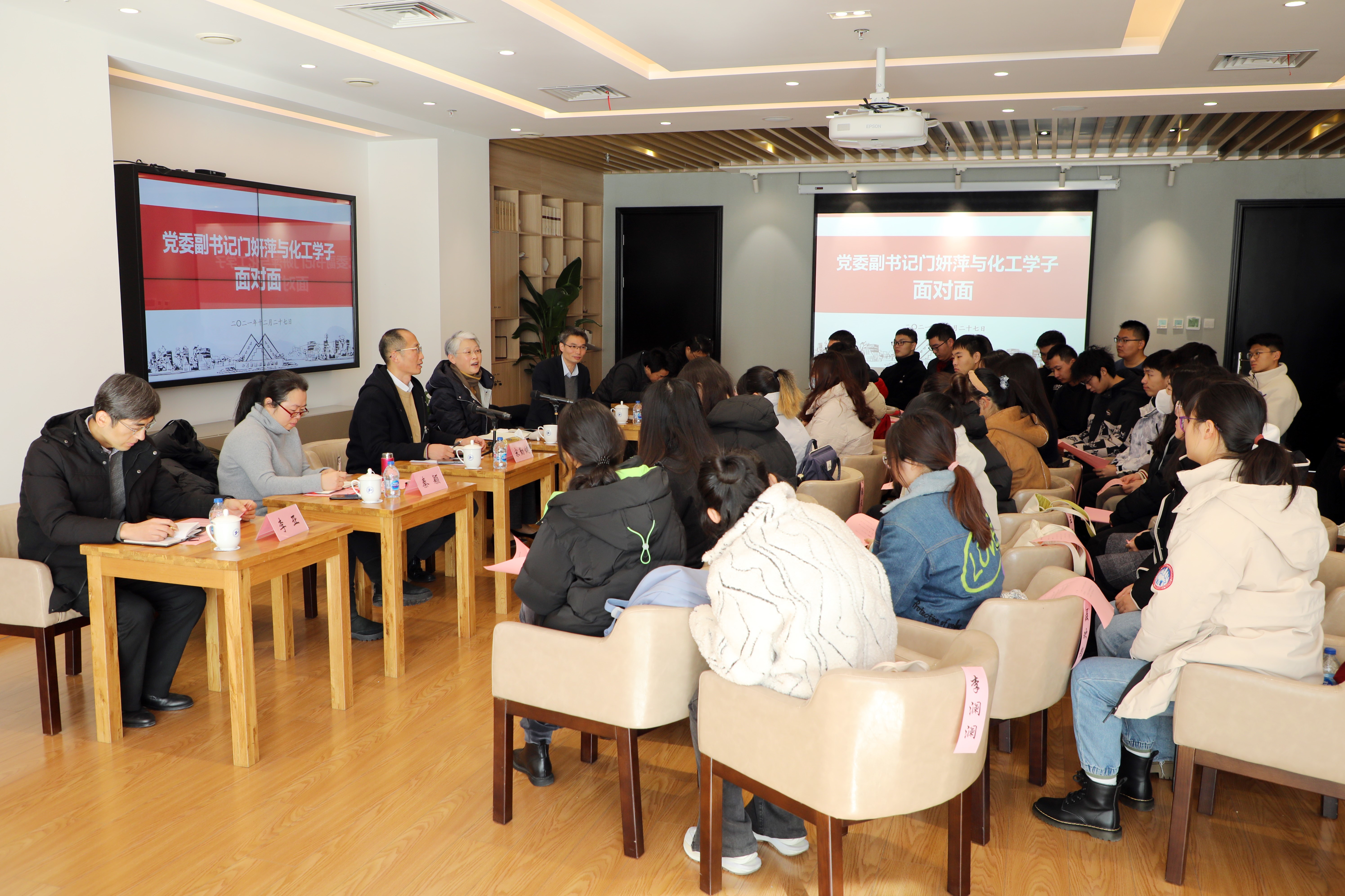 12月27日上午,公司党委副书记、纪委书记门妍萍与yl23455永利师生面对面座谈会在行政楼文化之家召开,公司党政领导班子成员、各系主任和辅导员、2020级本科生代表共四十余人参加了座谈会,座谈会由化工公司党委书记宋勤健主持。