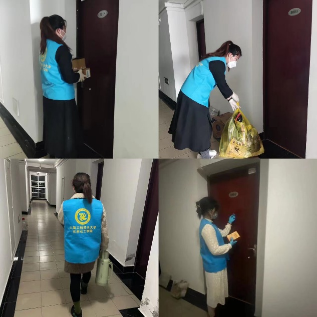 参加志愿服务的同学有:靳瑜琴、鲍存、金作明、李清萌、王金霞、李紫薇、杨希辰、张子文、叶丽晓、宁利文等。志愿者们轮流值班,负责一日三餐按时送餐上门,帮助隔离同学代购日用品、取快递,收垃圾等工作。她们按照公司疫情防控工作要求和任务分工,积极行动,冲锋在前,展示出工程大青年绝不退缩的青春之姿,表现出青年学子积极作为的昂扬面貌。