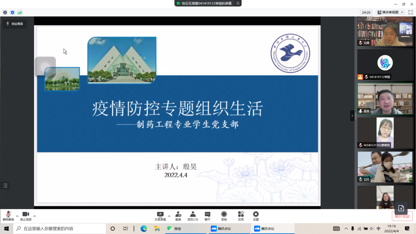4月4日至5日,各党支部组织党员和部分群众开展了在线学习。会上,大家认真学习了孙春兰副总理对上海的疫情防控工作要求和李强书记关于疫情防控工作要求,详细讲解了公司疫情防控工作的十一项要求。会上还传达了公司疫情防控工作会议的精神,要求公司教师关注关心所指导研究生和本科生的生活学习情况和思想情绪,及时排忧解难;认真做好在线教学和员工指导工作,保质保量完成线上教学任务;鼓励大家特别是教师党员积极参加社区志愿活动,发挥党员先进模范作用。