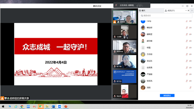 环境工程专业教工党支部召开疫情防控专题组织生活覆盖系所全体教师,支部书记胡婷莛强调了党中央疫情防控“外防输入,内防反弹,动态清零”的总方针;传达了国务院副总理孙春兰调研指导公司疫情防控工作时的重要指示精神和市委书记李强关于疫情防控工作要求;通报公司近期疫情防控情况。