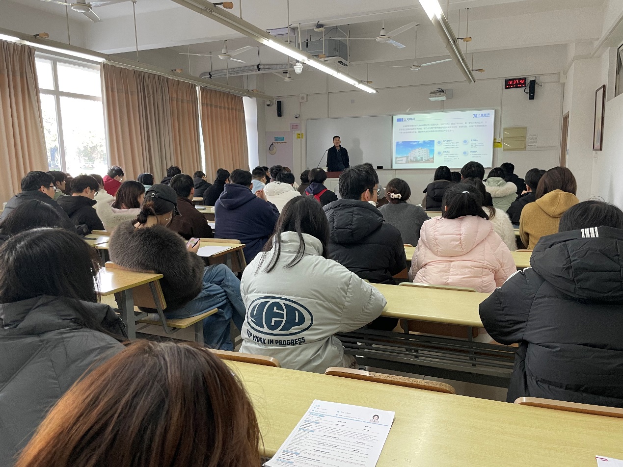1月14日,上海新阳半导体材料有限公司一行走进yl23455永利,在教学楼B110举办专场招聘宣讲会。公司2026届相关专业毕业生参加。