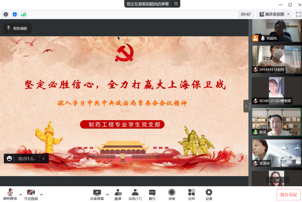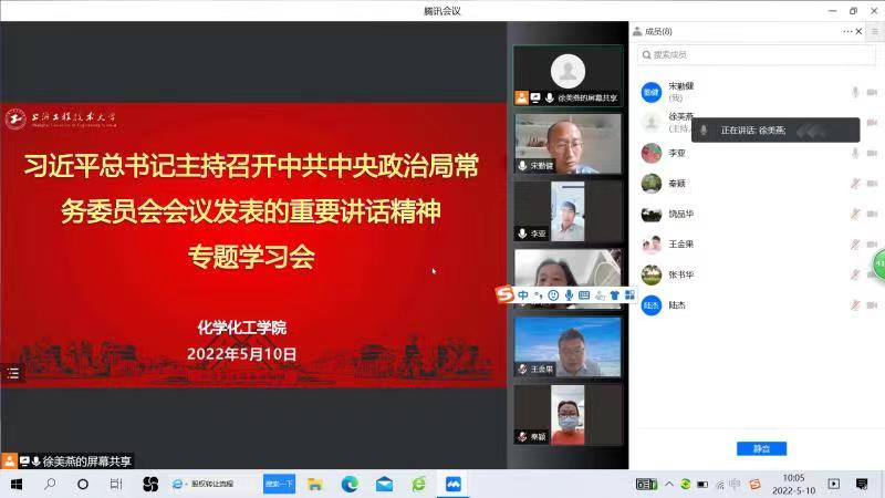 党委副书记、经理饶品华表示,我们要认真学习领会习近平总书记在5月5日中共中央政治局常务委员会会议上的重要讲话,切实把思想和行动统一到习近平总书记重要讲话精神和党中央决策部署上来,增强“四个意识”、坚定“四个自信”、坚决做到 “两个维护”。毫不动摇坚持“动态清零”总方针,坚定必胜信心,大家齐心协力一定能够打赢大上海保卫战。同时,我们要克服疫情对科研、教学等工作的影响,领导干部和党员同志要带头攻坚克难,在做好做实疫情防控工作的同时,统筹协调、稳步推进公司公司各项工作实现预期目标。