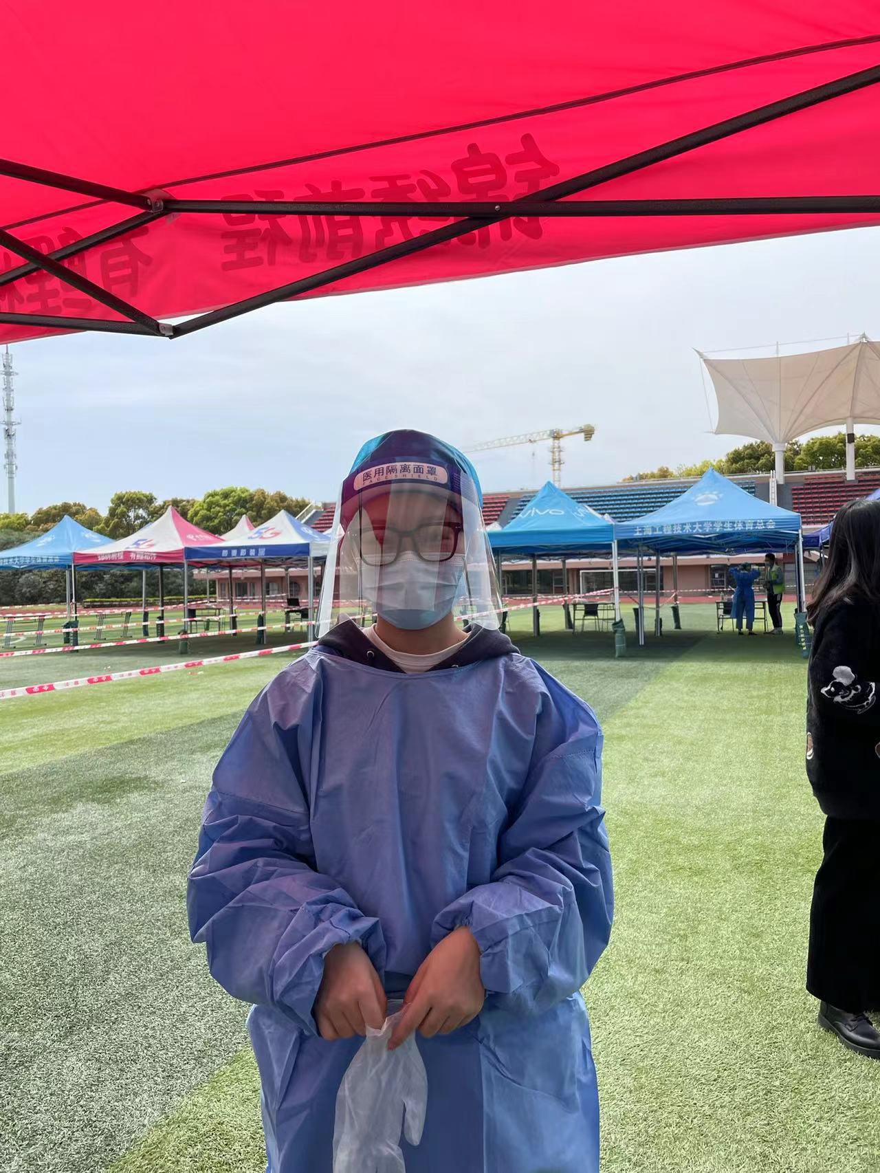 在党支部党员同志的引领和号召下,更多的入党积极分子、共青团员也投身到抗疫中去,谢欣玥同学在小区担任了为老年人住户送菜的任务、邵心怡同学负责协助医护扫码登记核酸人员信息、刘在伟同学做志愿者提醒同学们排队要保持2米距离。