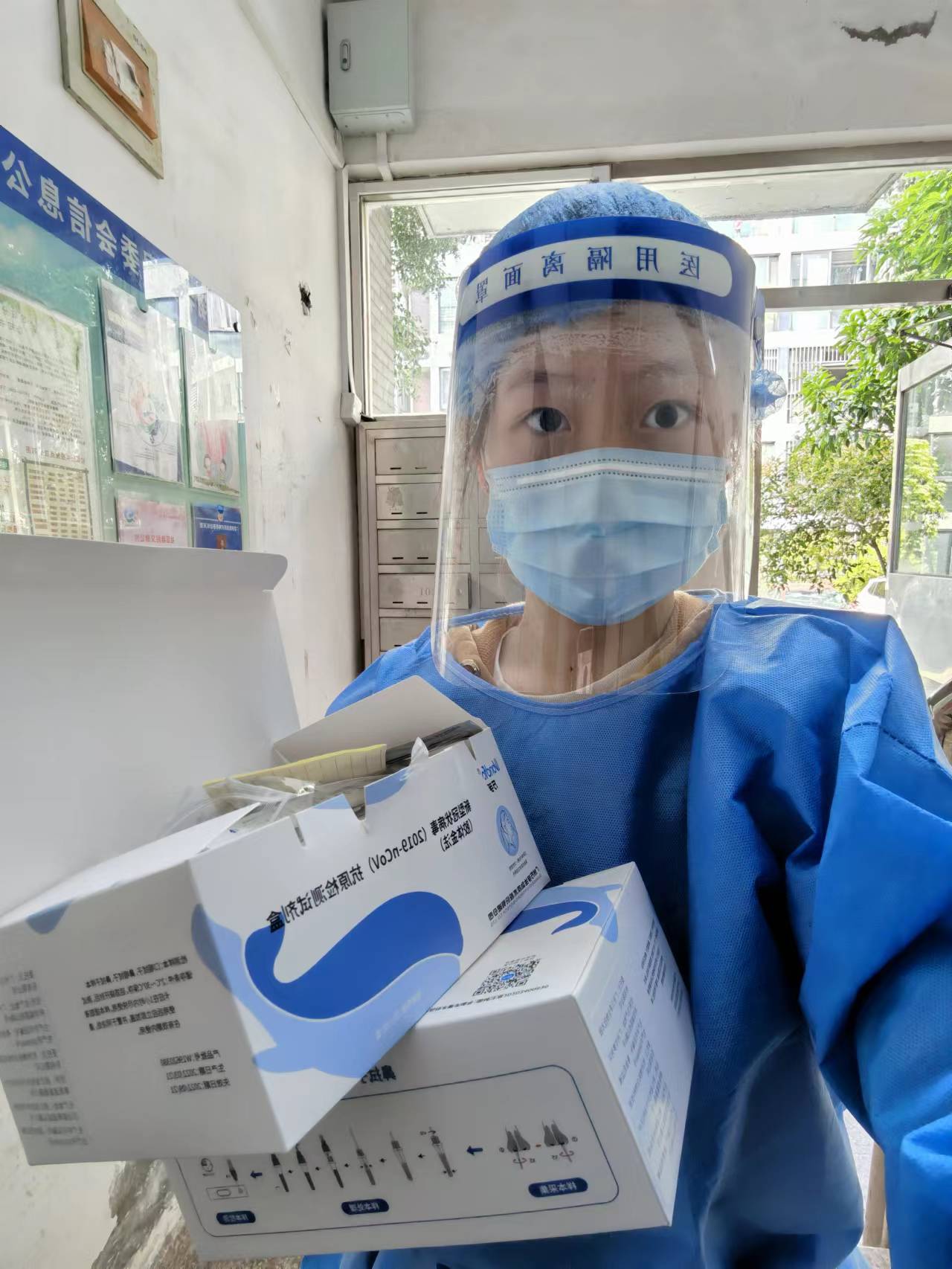 党员龚逸群隔离在小区,她积极参与到小区抗疫一线,引领居民有序参与检测采样、将居民团购物品送货到门、收集汇总抗原检测照片、维持核酸检测秩序,疫情一日不除,她就会在抗疫岗位上一日不退。