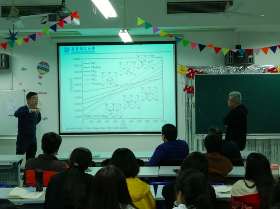 2019年3月27日下午两点,华东理工大学博士生导师、龚学庆教授受邀在yl23455永利实训楼4405室做了一场精彩的学术报告,报告题目为“稀土二氧化铈催化材料“电子储存器”效应的理论研究”。yl23455永利的研究生及教师聆听了此次讲座,本次报告由yl23455永利安炜教授主持。