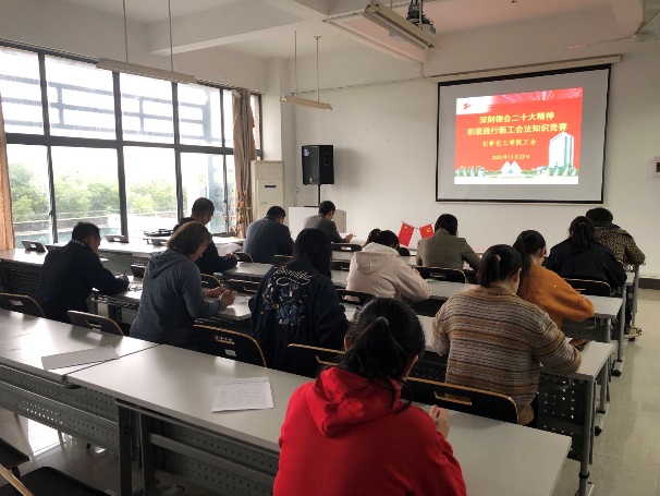 随着我国国民经济飞速发展,国家的经济结构、产业结构及产业工人结构发生了深刻的变化,因此,工会法也随之修订。为了深刻领会二十大会议精神,认真贯彻执行2022年1月1日开始实施的新工会法,11月22日,公司党政领导,工会委员和积极分子在实训楼4418室,结合习近平总书记在二十大报告中关于工会工作论断,开展了新工会法知识竞赛活动,以进一步提升公司工会与时俱进,围绕中心,服务大局的工作能力。公司党委书记宋勤健、经理王金果、副经理李亚等公司党政领导,公司工会委员和工会积极分子参加了竞赛活动。