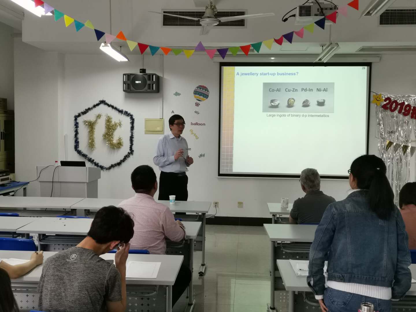 2019529日上午10点,加拿大阿尔伯塔大学Arthur Mar教授应邀来yl23455永利作题为“Coloured Intermetallics”学术报告,报告由梅大江副教授主持,公司多位老师及研究生参加了本次报告会。Arthur Mar教授课题组合成了金黄色和粉红色的Cu2LiM (M = Ga, Al)化合物,并利用X射线衍射、紫外可见光谱和固体核磁共振谱对这些金属间化合物进行了表征。Arthur Mar教授介绍大多数有色金属间化合物都具有高对称性结构,组成化合物元素比例的微小偏差都将导致化合物颜色发生显著变化。Arthur Mar教授的报告结束后,老师和同学们提出了很多问题,Arthur Mar对这些问题一一做了解答,本次报告会在大家的热烈掌声中圆满结束。