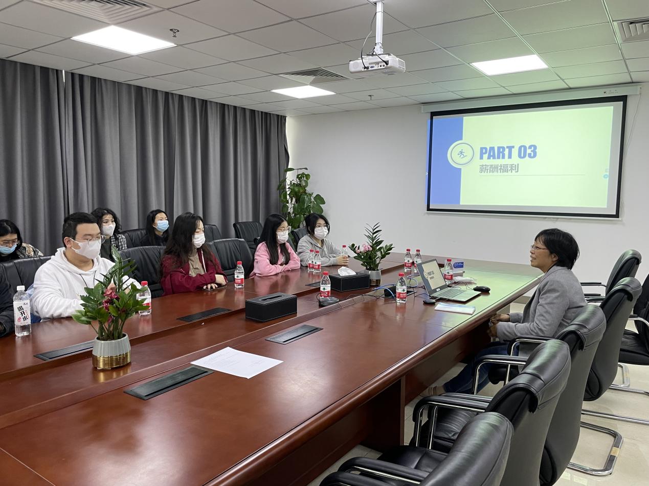最后,招聘人事经理王英杰向毕业生介绍了入职后职业培训以及未来职业发展前景等相关内容。同学们反应热烈,与企业积极沟通了解职业导向等相关信息,并现场投递简历面试,得到良好的求职反馈。