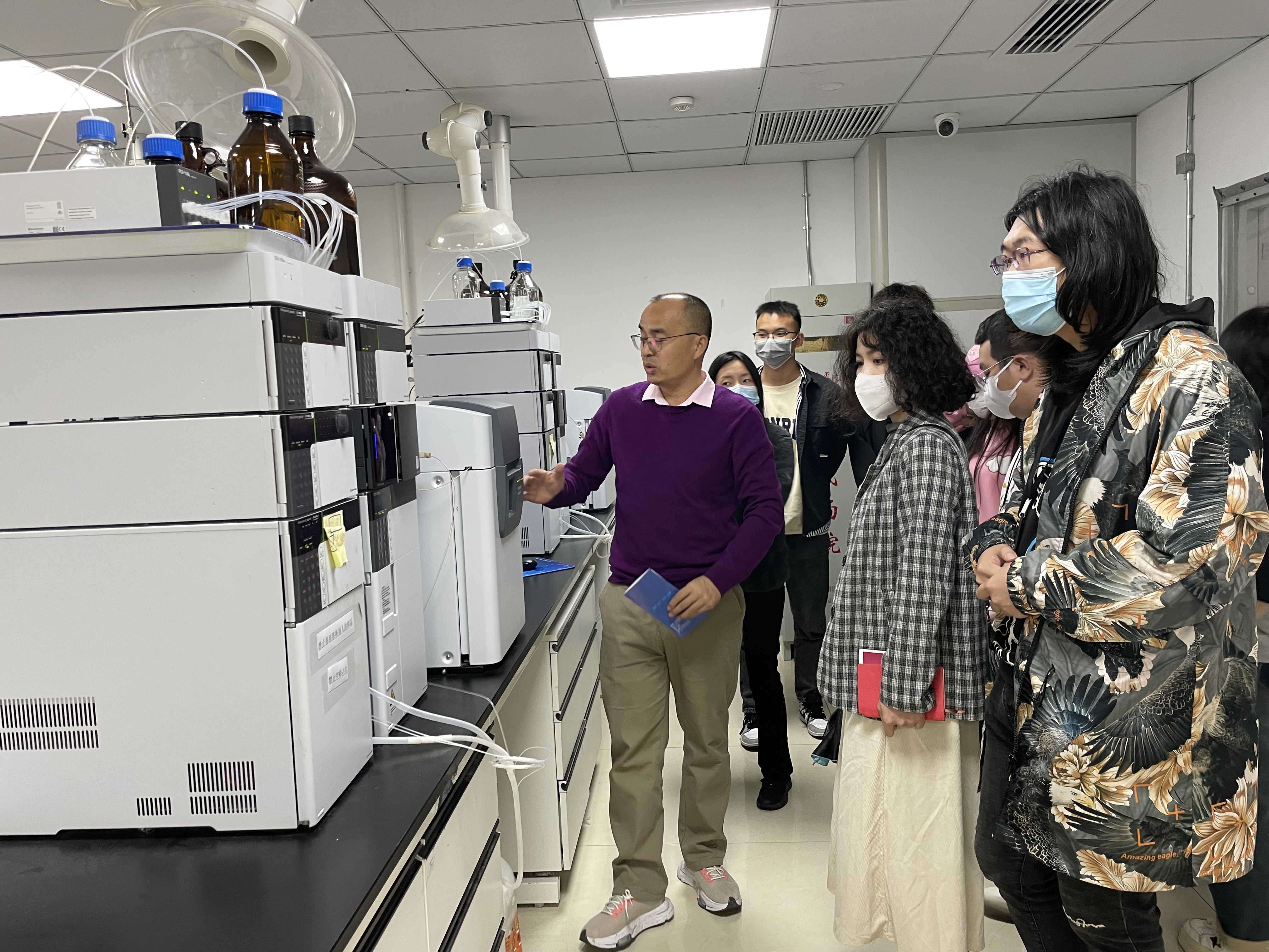随后,杜柱博士带领公司师生一行参观了实验室,了解工作环境和工作内容,同时为同学们展示了作为“医药人”的责任与使命,使得在场同学备受鼓舞。