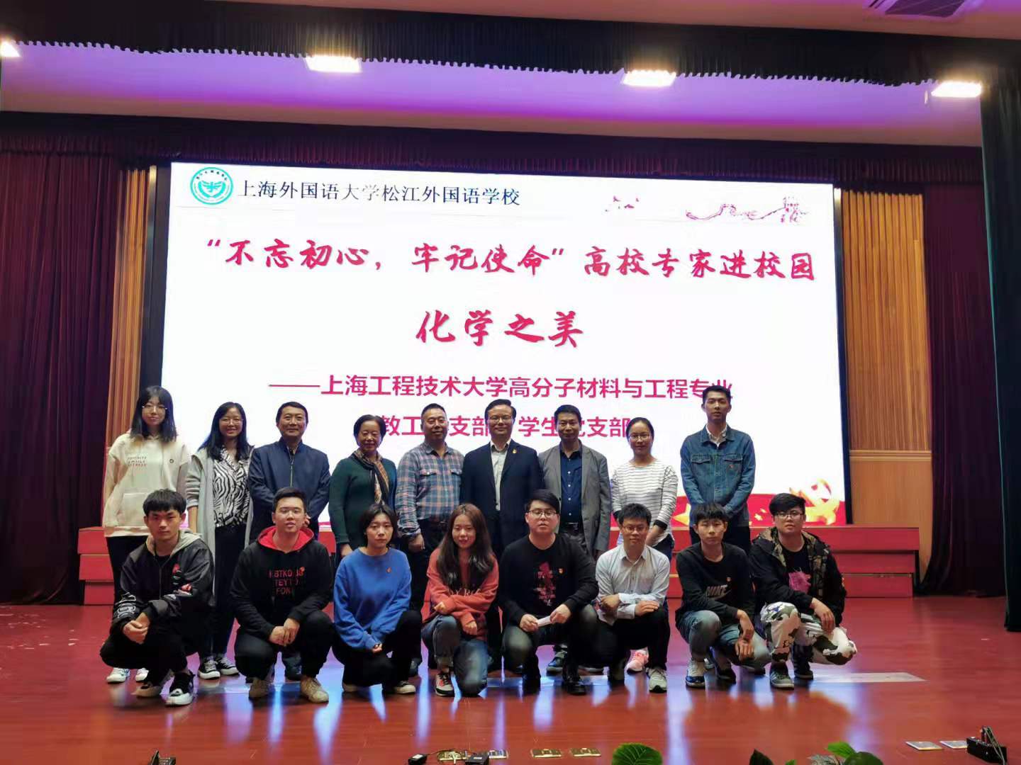 为积极贯彻公司党委开展“不忘初心、牢记使命”主题教育的要求,广泛动员和引导党员积极参与志愿服务,10月18日下午2点,yl23455永利高分子材料与工程专业教工党支部与员工党支部同赴上海外国语大学松江外国语公司为九年级员工带来“化学之美“主题讲座。