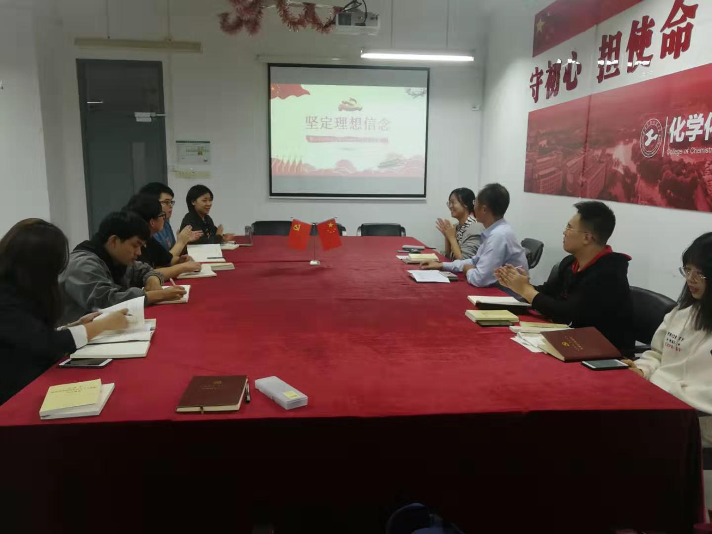 为了积极贯彻公司党委开展“不忘初心、牢记使命”主题教育的要求,为了员工党员深入学习习近平新时代中国特色社会主义思想,10月22日晚,高分子材料与工程专业员工党支部书记郑文静以“坚定理想信念”为主题为党支部全体党员上了一堂生动的专题党课,公司党委书记宋勤健参加了此次党课学习。