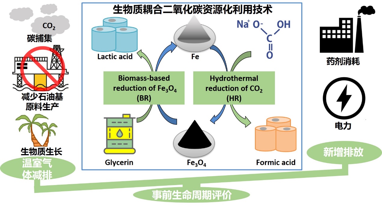 图3. 生物质-金属循环耦合水热法还原CO2制甲酸的碳减排潜力研究