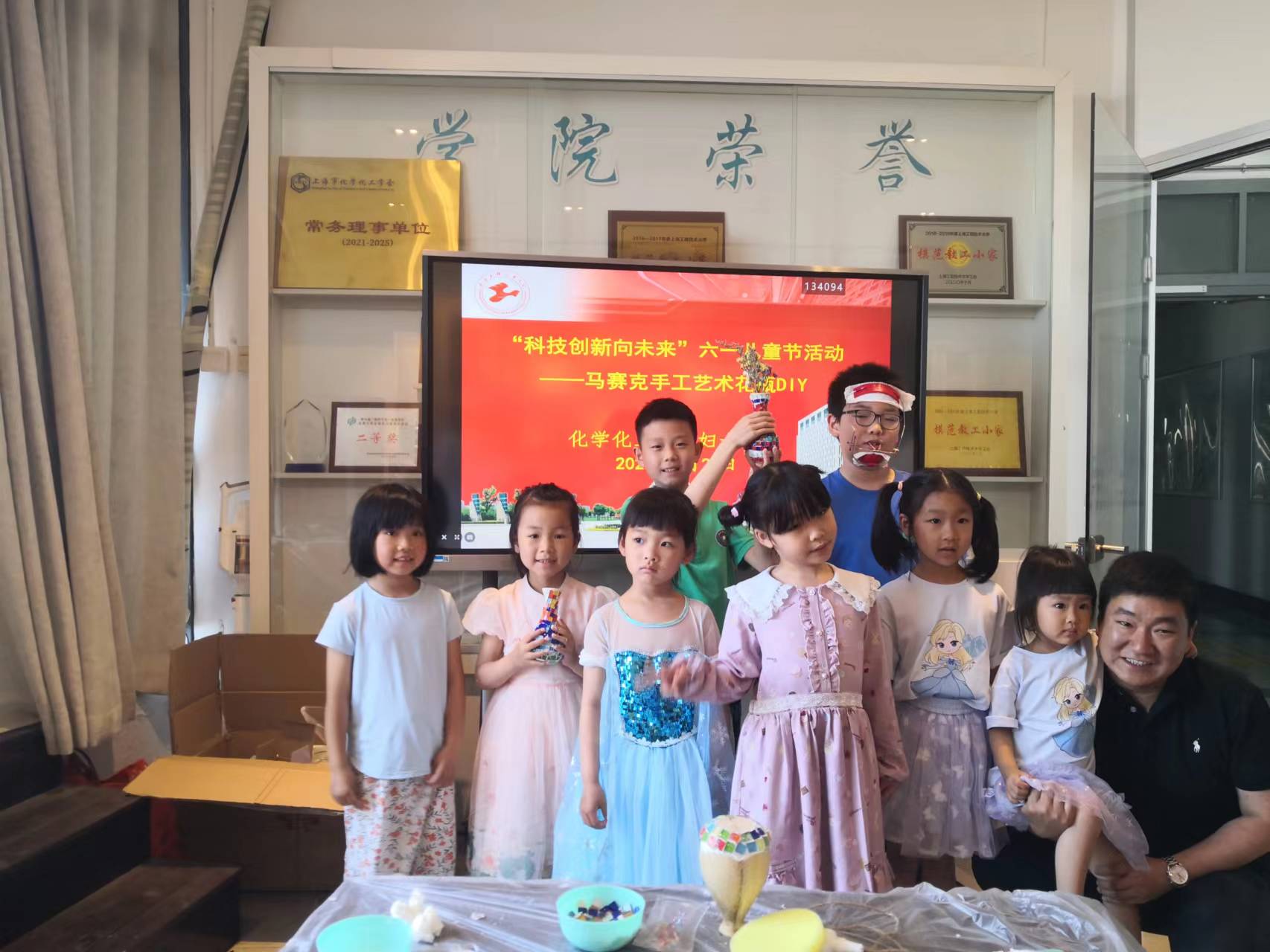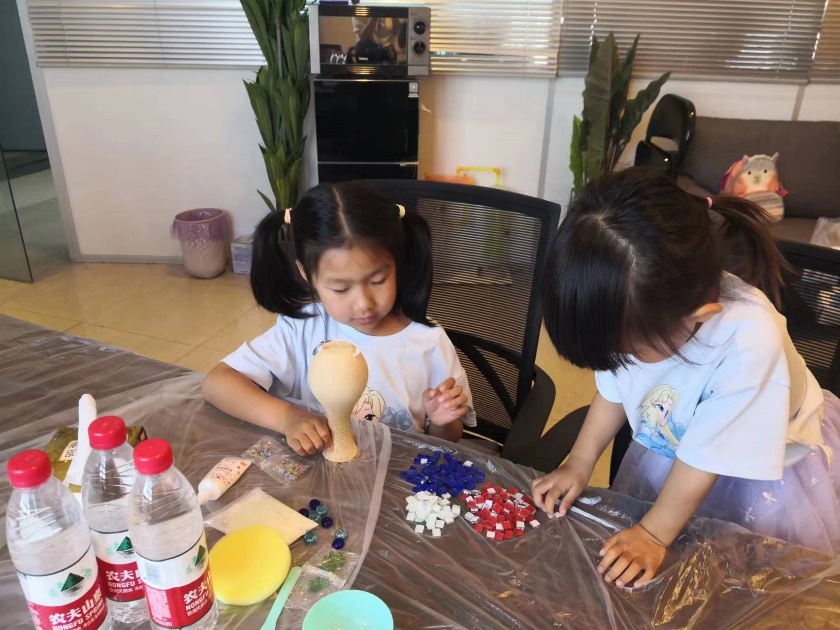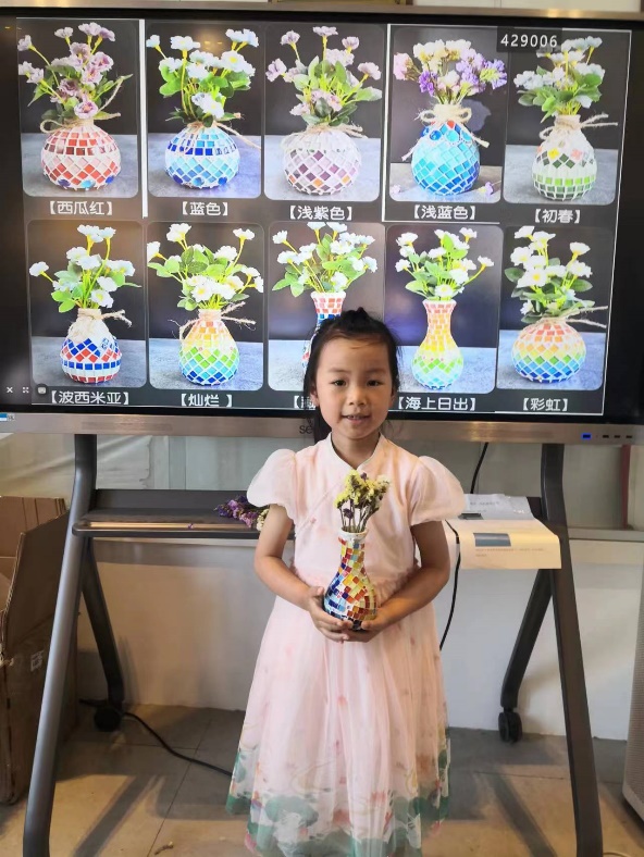 在儿童节来临之际,激发“程二代”的创新精神和实践精神,yl23455永利于5月28日上午开展了“科技创新向未来”——亲子马赛克手工艺术花瓶DIY活动。