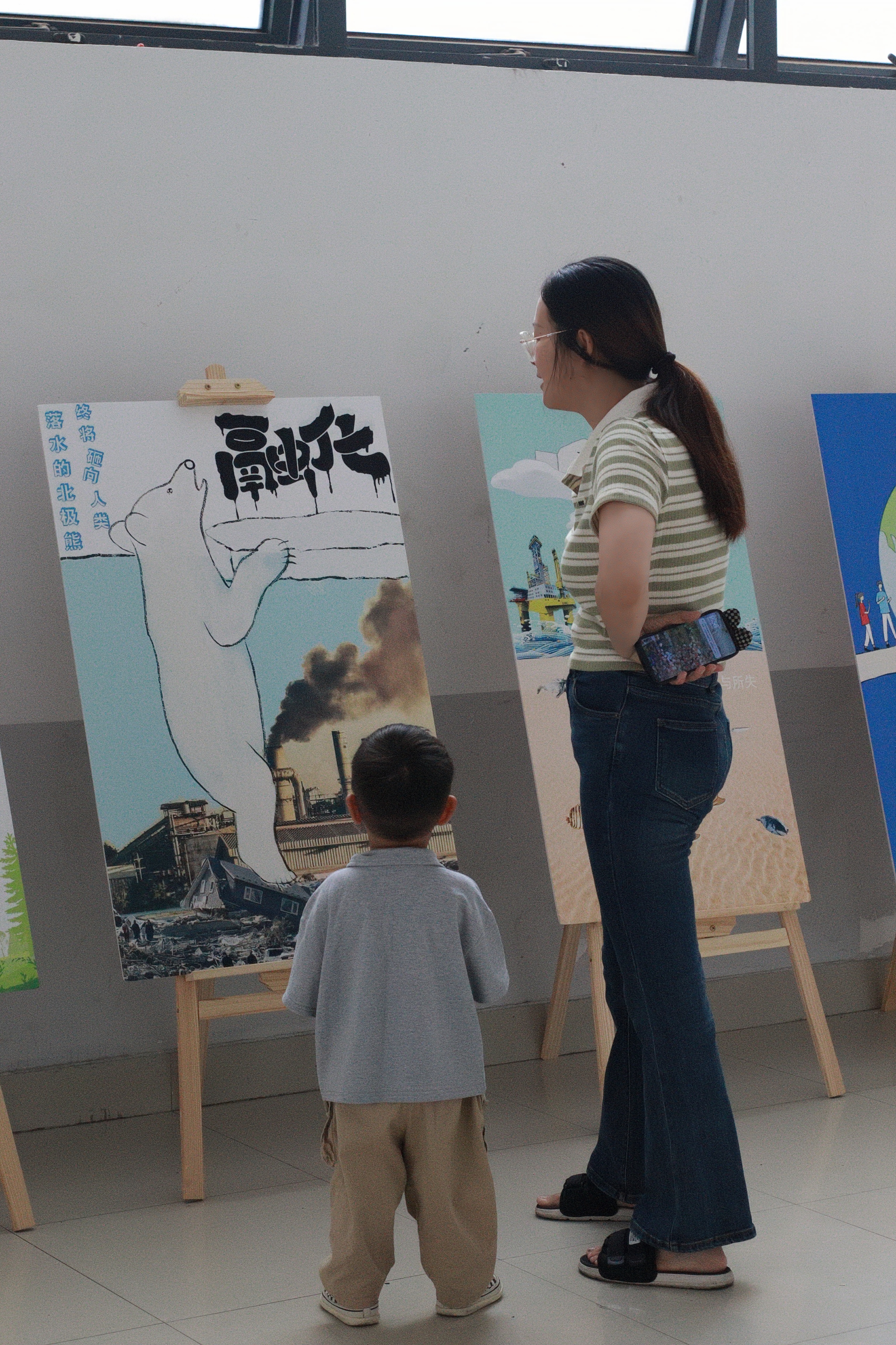 为强化社区居民环境保护意识,引导并推动社区居民形成节约适度、绿色低碳和文明健康的生活方式与消费模式,党支部还在居委会活动大厅举办了环境保护海报展出宣传活动,“融化”“冰川之下”“绿进沙退”“活化石”“不要为了‘鳄’而‘恶’”等四十余件由环境工程专业员工亲自设计的环境保护作品吸引了很多居民驻足欣赏,党员志愿者们还担任了海报讲解员,为大家介绍和解读作品。