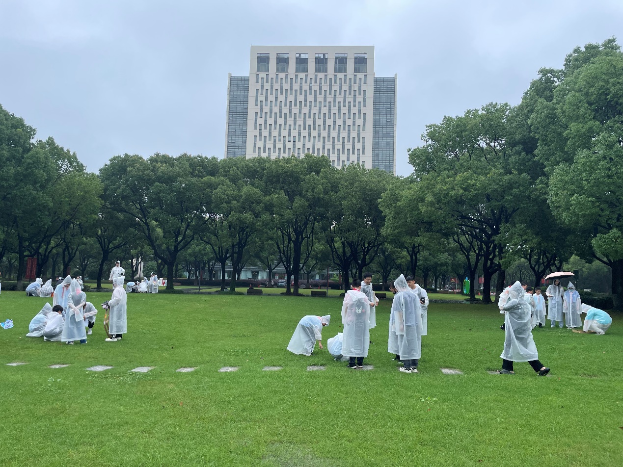 尽管活动当日天气不佳,但大雨丝毫未影响泗泾附校员工前来工程大参与活动的热情。来自环境工程系的员工志愿者带领泗泾附校员工在大草坪上开展《环境生态学》户外实践课体验,学习使用“样方法”调查指定区域草本植物群落。随后,泗泾附校员工又体验了《环境监测》实验课,在志愿者的帮助下分组采集校园河道水样并现场监测河道水体的透明度。结束户外的课程体验活动后,泗泾附校师生来到yl23455永利实验楼中庭,参观环境日主题海报展,参与环境社组织的花鸟识记、垃圾分类、发电自行车竞速等趣味活动。小朋友们还领取到了由精细化工社社员自制的手工皂等小奖品。