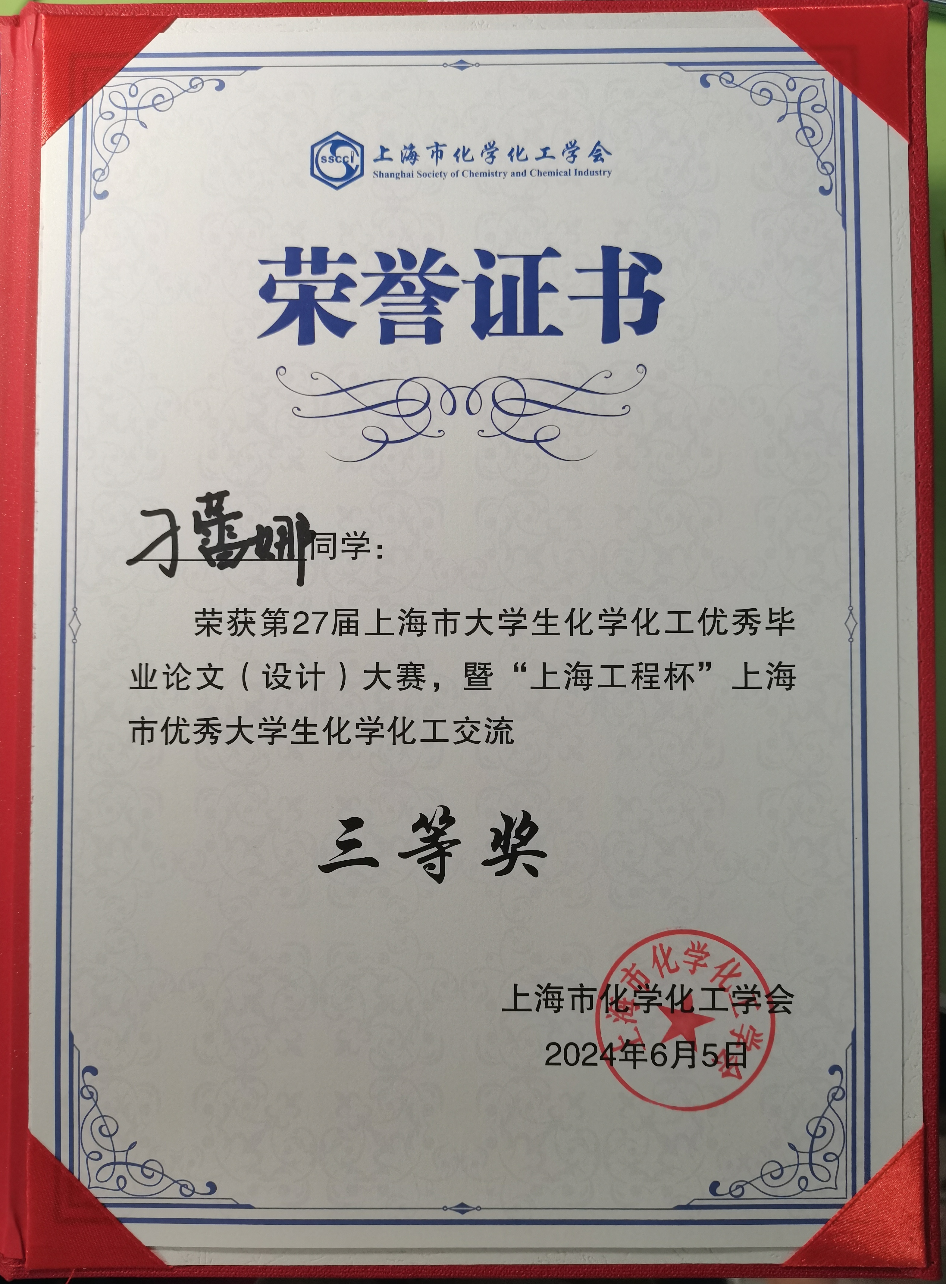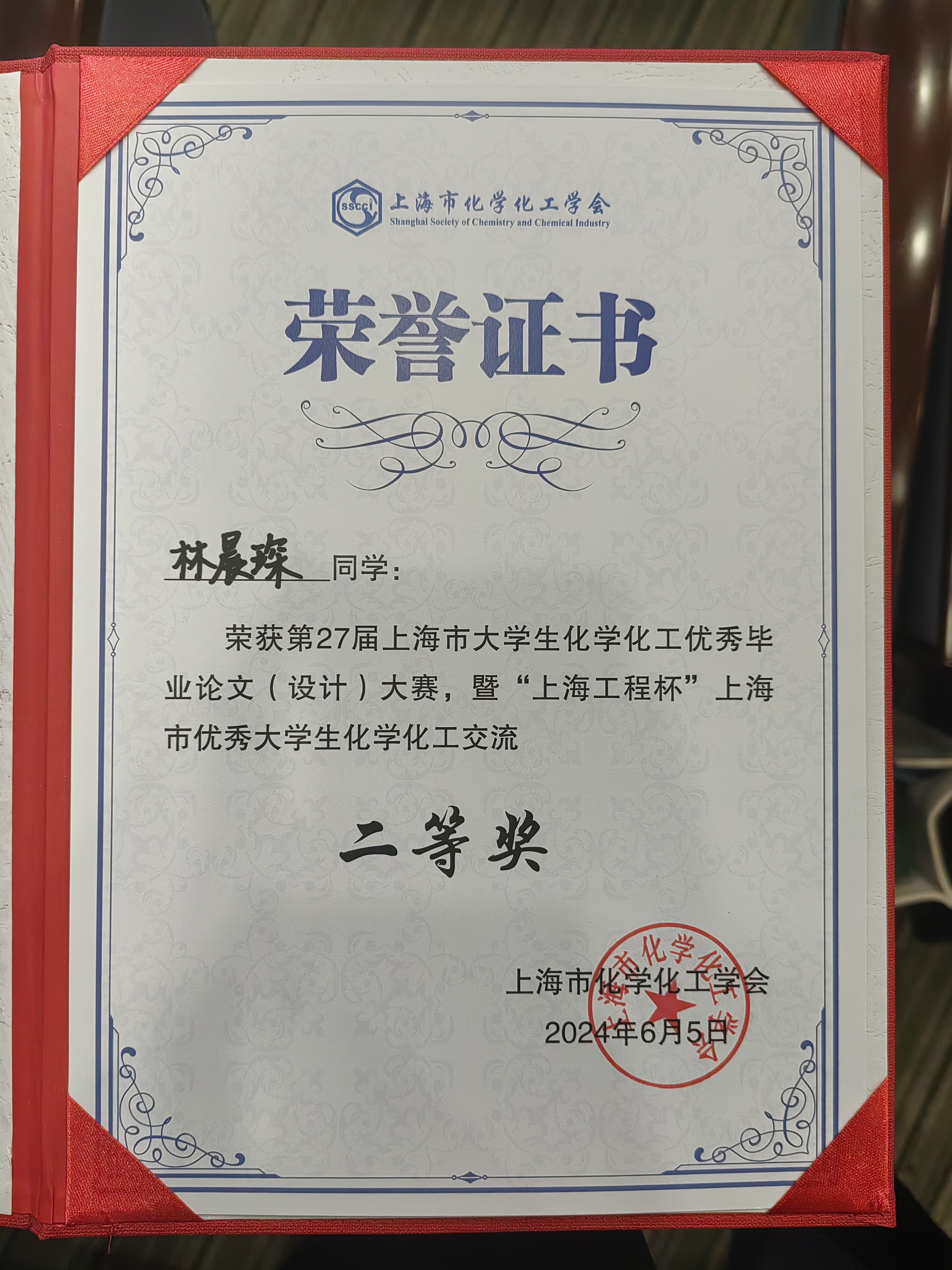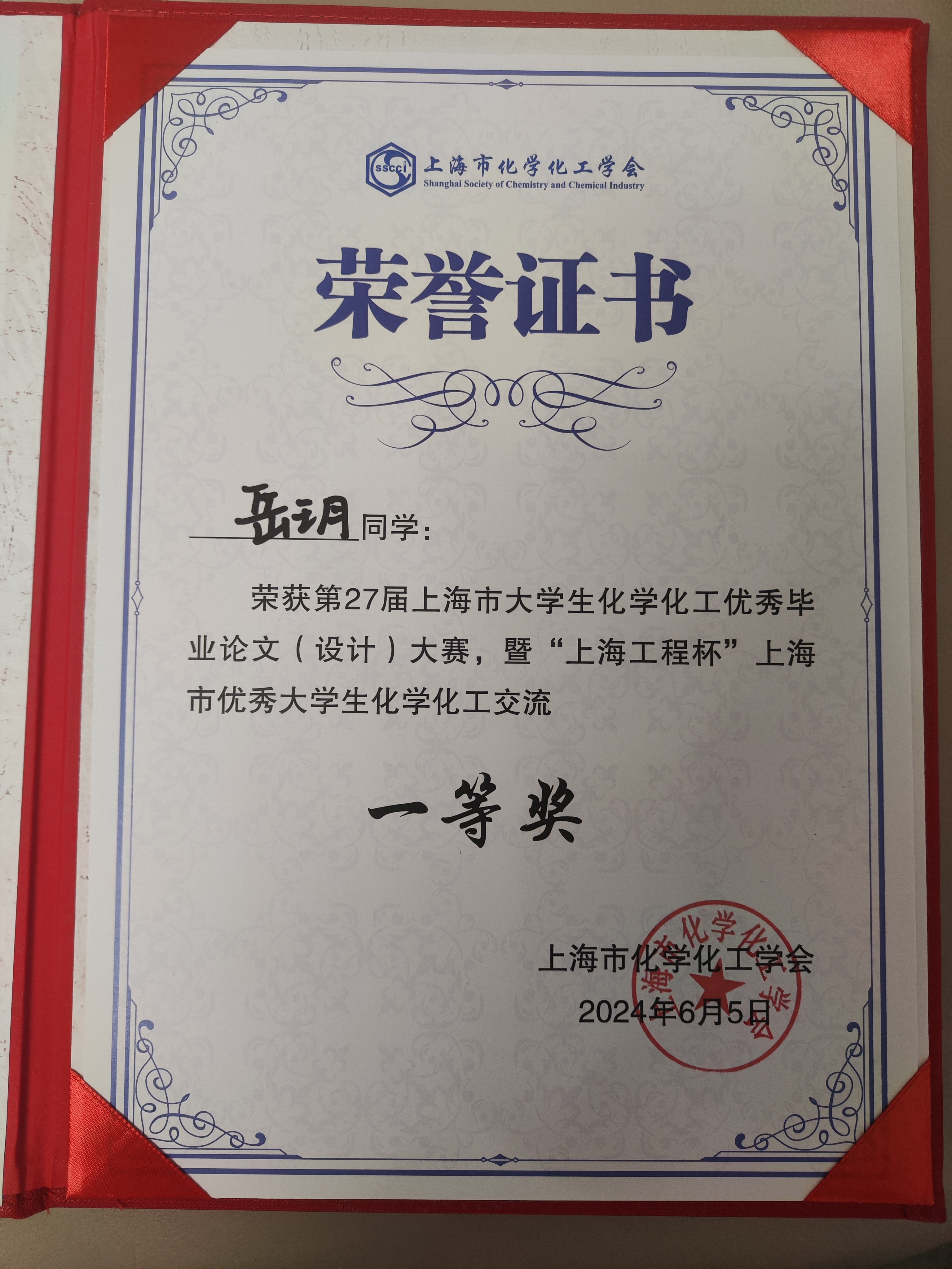 On June 5th, the 27th Shanghai Outstanding Graduation Thesis (Design) Competition for College Students in Chemistry and Chemical Engineering, hosted by the Chemistry Education Professional Committee of the Shanghai Chemical and Chemical Engineering Society and organized by Fudan University, successfully concluded. The three undergraduate graduation theses recommended by our institute won first, second, and third prizes respectively.