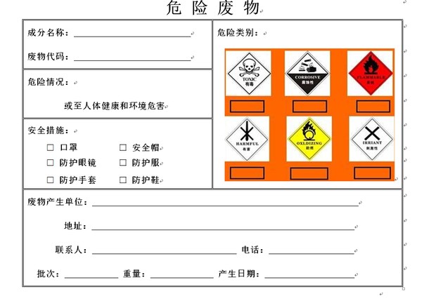 废弃物转入暂存柜台账: