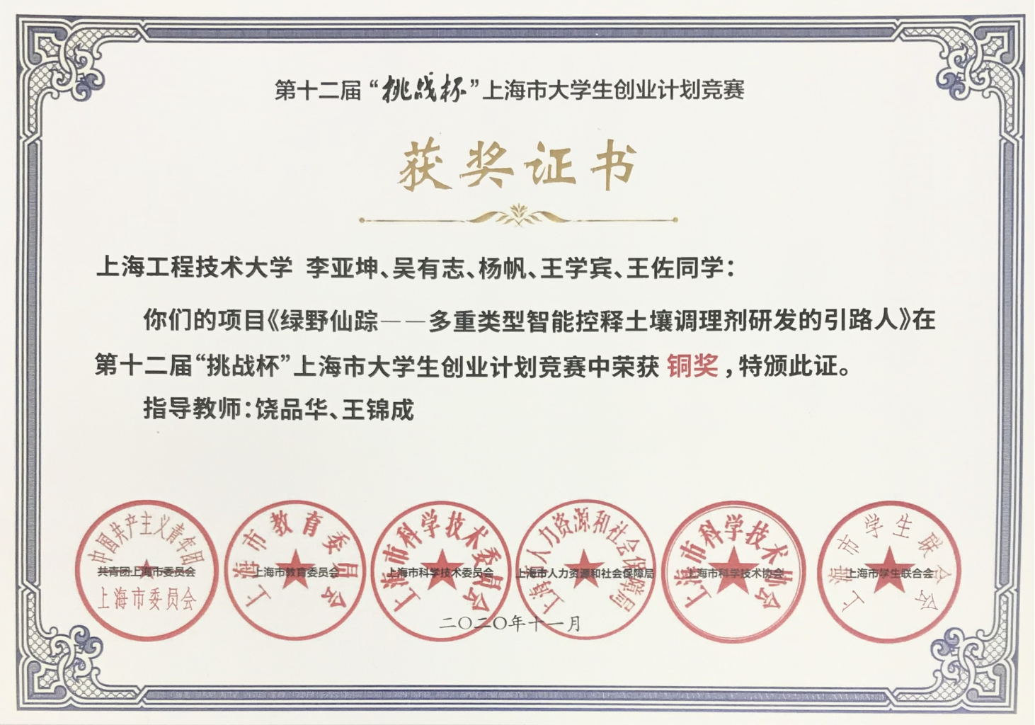 4. 一种自主响应型水肥复合控释剂及其制备方法.专利授权号ZL201811088061.2