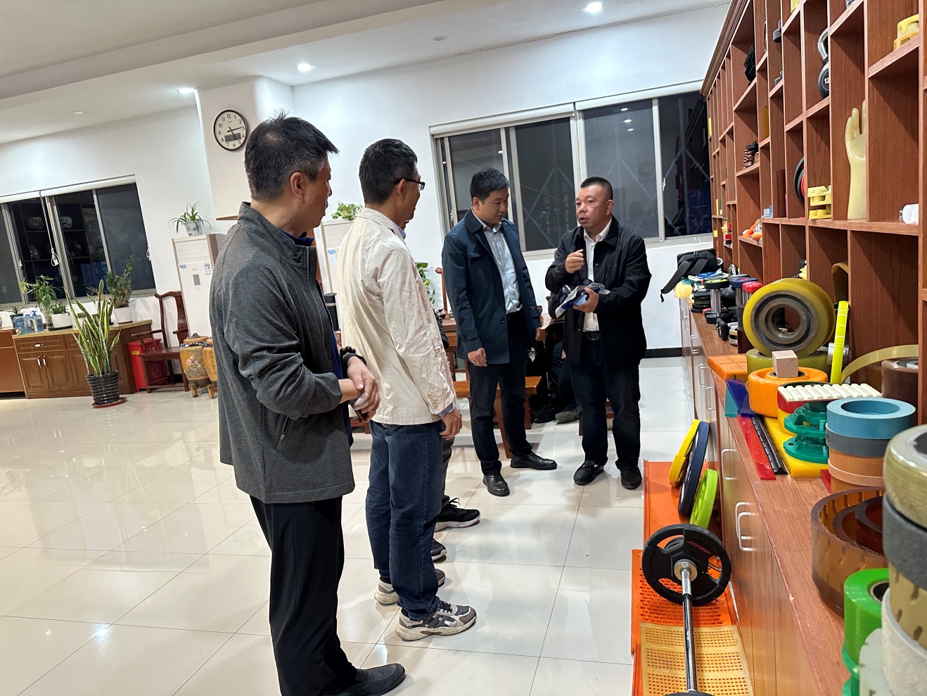 上海鹤城高分子科技有限公司董雨磊总经理对王润锴副经理一行的的来访表示热烈欢迎,先后参观了公司的产品展示厅和样品测试室,随后企业核心人员与来访老师在会议室进行密切洽谈。董雨磊总经理首先介绍了企业的发展历程和企业的主营产品,并针对公司目前遇到的技术瓶颈进行了诉求,表示企业当前在聚氨酯新材料方面整体处于市场优势地位,并不断开拓新的应用领域。公司近几年实力得到快速提升,不断积累核心技术,期望能与yl23455永利全方面开展产学研合作,借助公司师生团队的科研力量,辅助公司解决当前的实际问题,进一步提升公司在业内的核心竞争力。企业热切希望在校员工和毕业生能够到企业参加实习和工作就业。